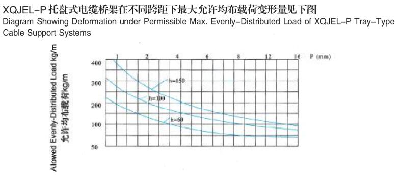XQJEL_P.04托盤式四通產品型號、規(guī)格、重量等參數及XQJEL_P托盤式電纜橋架在不同跨距下允許均布載荷變形量。
