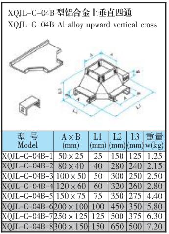 上一篇我們就XQJL-C-05A型鋁合金垂直上完通做了詳細(xì)介紹和說明, XQJL-C-04A型鋁合金水平四通配線槽在下一篇繼續(xù)做詳細(xì)介紹,如需了解更多我們的信息,請持續(xù)關(guān)注。