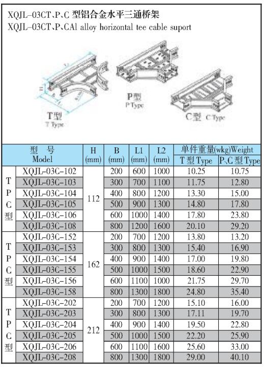 XQJL-03CT、P、C型鋁合金水平三通橋架