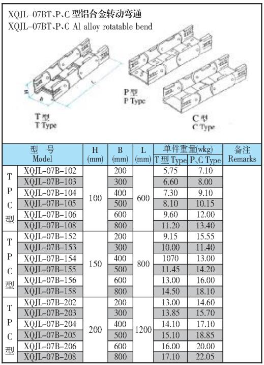 XQJL-07BT、P、C型鋁合金轉動彎通生產(chǎn)廠家