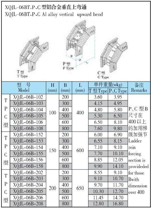 XQJL-06BT、P、C型鋁合金垂直上彎通橋架