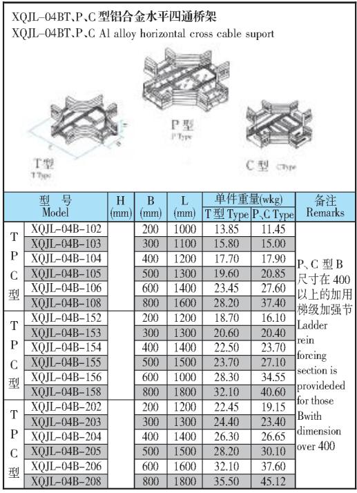 XQJL-04BT、P、C型鋁合金水平四通橋架